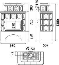 Агрегат оснащен системами регулировки подачи первичных и вторичных воздушных масс. Пластины, кольца и рама печи изготовлены из чугуна. В качестве топлива используются дрова или гранулы. Расход дров в среднем составляет 2 кг в час. Модель оборудована вместительной духовкой и одноконфорочной варочной панелью. Чугунная топка снабжена дверцей со стеклокерамической вставкой. Предусмотрена также вместительная дровница.